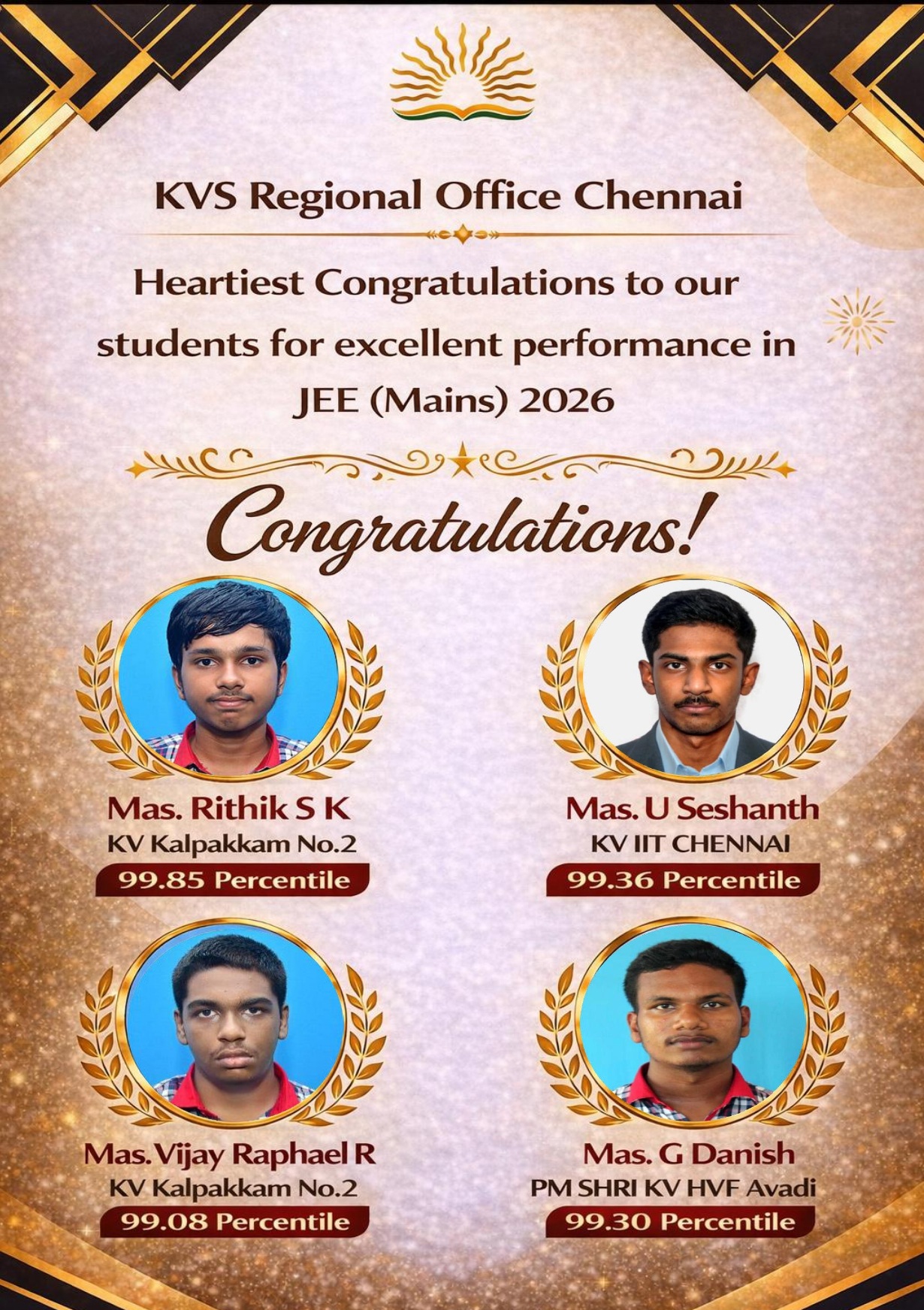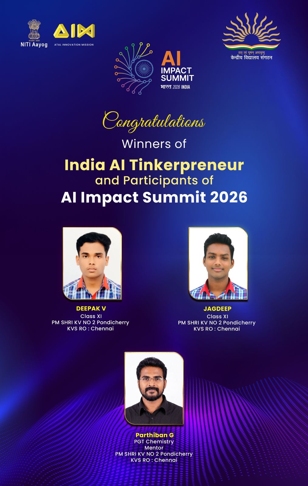 गौरव का क्षण! केवीएस चेन्नई रीजन ने 36वीं केवीएस ज़ोनल यूथ पार्लियामेंट में प्रथम स्थान प्राप्त किया है। हमारे प्रतिभाशाली छात्रों और समर्पित मार्गदर्शकों को हार्दिक बधाई!